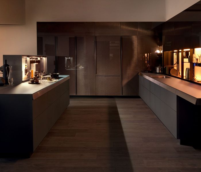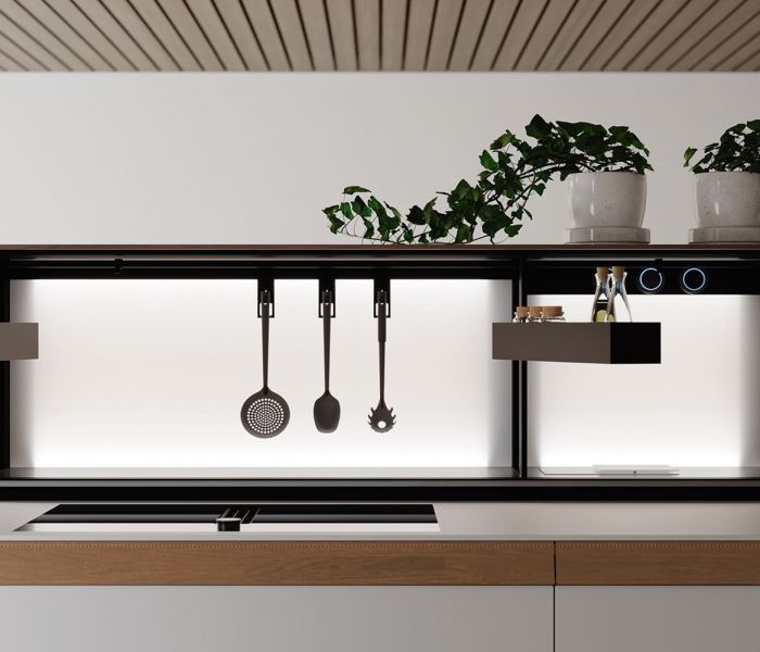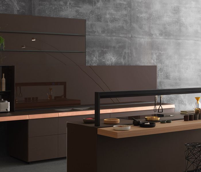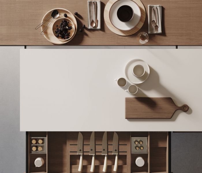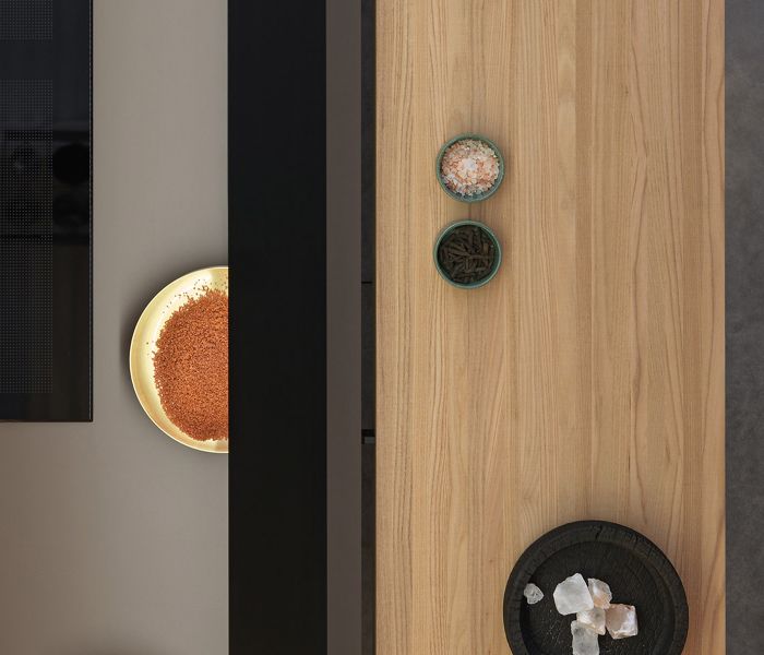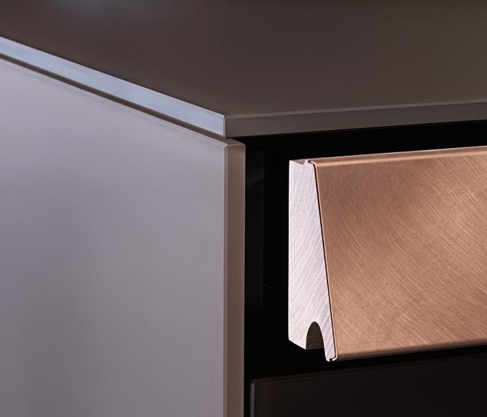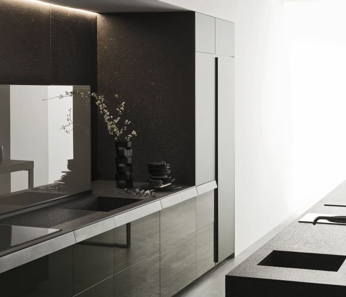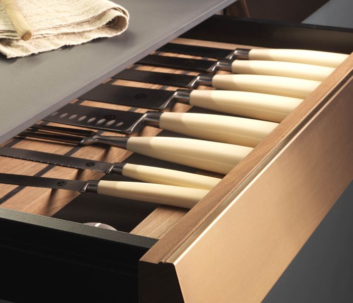 Genius Loci — дематериализация столешницы как идея: выдвижной ящик превращается в акцентный элемент, который можно персонализировать отделкой. Совершенство интеграции и чистота форм. Дизайн Габриэле Чентаццо