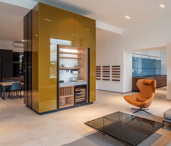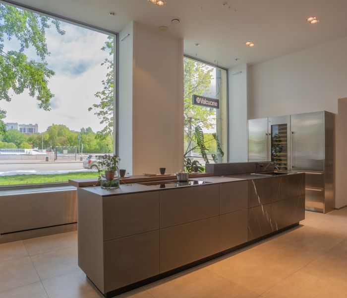Пространство, где архитектурные формы и скульптурные текстуры создают гармонию через контраст. Эргономика, воплощённая в ясности жестов.