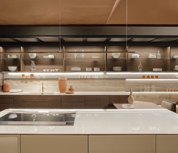 Система Vela оснащена откидным механизмом нового поколения со скрытым балансиром, который обеспечивает плавное и тихое открывание. Конструкция сохраняет чистоту линий, оставаясь при этом полностью функциональной. Дверь шкафа легко поднимается легким нажатием, обеспечивая удобный доступ к содержимому и хороший обзор даже при длине фасада до 3 метров. Модель доступна во всех вариантах отделки из ламинированного HPL и материала Fenix. Благодаря лаконичному дизайну шкаф естественно вписывается в архитектуру жилого пространства.