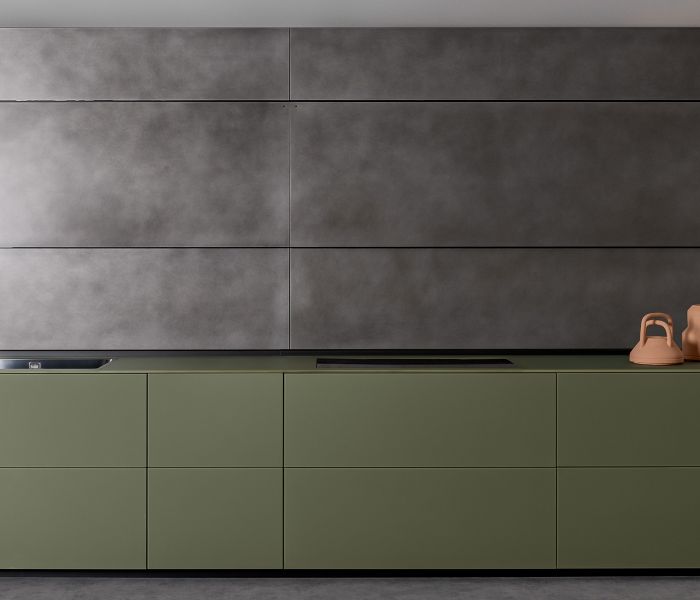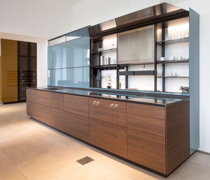 Рестайлинг системы выделяет три ключевые зоны: приготовление, мойка и подготовка, дополненные деревянными аксессуарами от Габриэле Чентаццо. Вертикальные открывающиеся панели обеспечивают мгновенный доступ к содержимому, сохраняя чистоту линий.