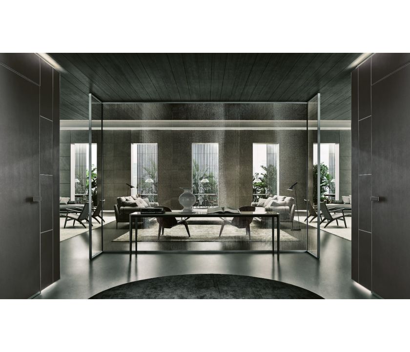 Spazio - система межкомнатных перегородок из стекла, изготавливаемых по размерам заказчика, эта система включает линейные, угловые и терминальные элементы, позволяя находить самые неожиданные решения для внутренней организации пространства, будь то домашние или офисные помещения. Благодаря универсальности дизайна системы Spazio, с ней свободно сочетаются раздвижные и распашные двери Moon, Sail и Zen. Разнообразие сочетаний отделок структурных алюминиевых элементов и оттенков стекла вдохновляет на поиск неординарных решений.