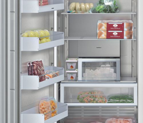 Любой продукт может быть охлажден в большой морозильной камере (камера оснащена диспенсером для воды) модели RF 463. Полностью интегрируемое устройство оснащена такими функциями, как электронная регулировка температуры от 7°F до -9°F, с подсветкой дозатора для кубиков льда, дробленого льда и охлажденной воды.